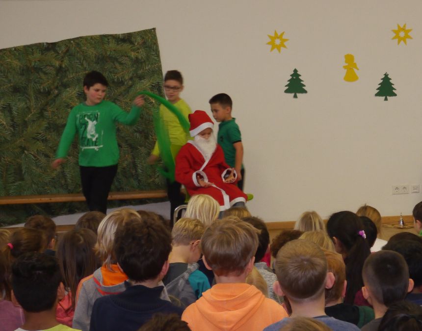 Die Klasse 3b hat in den letzten Wochen unter der Leitung von Frau Riesselmann das Stück „Der Weihnachtsmann macht Urlaub“ einstudiert und am letzten Schultag vor den Weihnachtsferien für alle Schülerinnen und Schüler unserer Schule aufgeführt. Davon handelte das Stück: