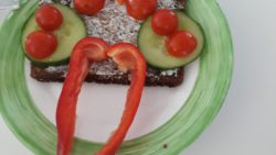 Am vergangenen Dienstag gestalteten Kinder aus dem 3. und 4. Jahrgang in der Ernährungs- und Koch-AG lustige Pausenbrote. Vorher kümmerten sich Kleingruppen darum, dass das Gemüse gewaschen, geschnitten und auf einem Buffet bereit gestellt wurde. Alle hatten viel Spaß beim Gestalten! Später wurden die Brote auch gegessen, sodass einige Kinder merkten, dass gesund auch lecker sein kann!